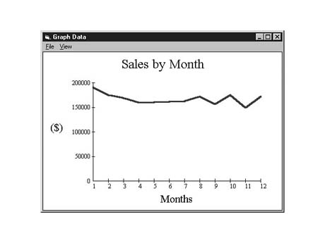 As Integer) ` ` handle graph menu requests ` Dim objDG As New DataGraph Dim strSQL As String ` Select Case Index Case 0 ` sales by region ` strSQL = "SELECT Region, SUM(Amount) AS SalesTotal FROM " strSQL = strSQL & "SalesData WHERE CompanyName<>'Budget' GROUP BY ÂRegion" ` objDG.DatabaseName = Data1.DatabaseName objDG.SQLSelect = strSQL objDG.GraphType = dgPie3d objDG.GraphField = "SalesTotal" objDG.GraphTitle = "Sales by Region" objDG.LegendField = "Region" ` Case 1 ` sales by month ` strSQL = "SELECT Month, SUM(Amount) AS SalesTotal FROM " strSQL = strSQL & "SalesData WHERE CompanyName<>'Budget' GROUP BY ÂMonth" ` objDG.DatabaseName = Data1.DatabaseName objDG.SQLSelect = strSQL objDG.GraphType = dgLine objDG.GraphField = "SalesTotal" objDG.LabelField = "Month" objDG.GraphTitle = "Sales by Month" objDG.LeftTitle = "($)" objDG.BottomTitle = "Months" ` Case 2 ` sales by customer End Select ` objDG.ShowGraph ` End Sub |