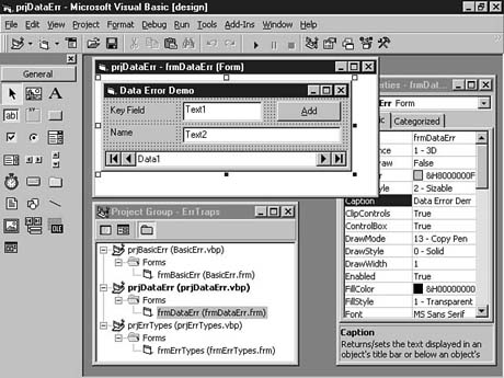 TIP: Usually, it is not a good idea to attempt to override this facility with your own database errors. As long as you use the Visual Basic data control, you do not need to add database error-trapping routines to your data entry forms. The only time you need to add error-related code is when you want to perform special actions in the Error event of the data control.