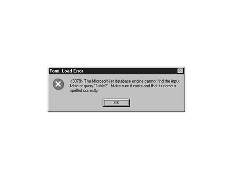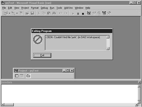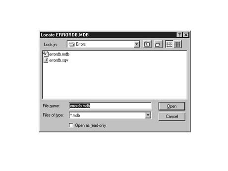 ERRORDB.MDB, you see a database error when the program runs. The error message is