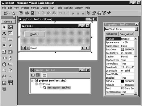 After adding this last code, save and compile the ActiveX DLL and then load your errTest project. After you load the frmTest form, add the following code to the general declarations area of the form.