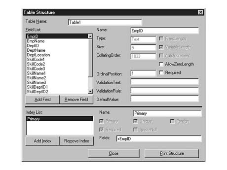 Visual Basic code! Table 16.7 and the SQL DDL statement in Listing 16.10 show how this