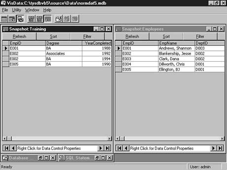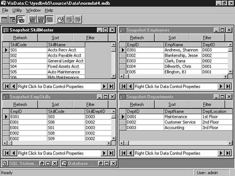 SQL"), and by using Visual Basic's Visdata application that you learned about in the
