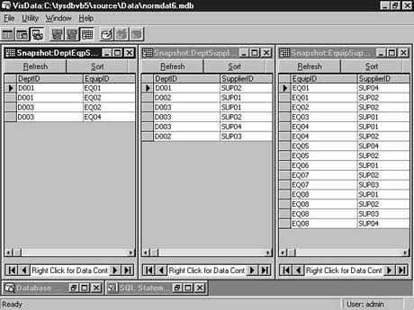 that none of the last three tables defined (EquipSupplier, DeptSupplier, and DeptEqpSuplr)