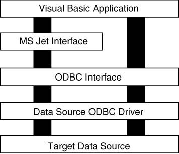 an ODBC data source, the Microsoft Jet interface does the talking to the ODBC interface,