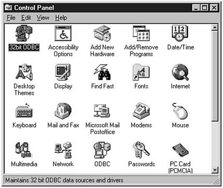 included in the Visual Basic 5 installation files. If you did not install the ODBC