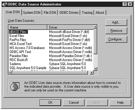 packages that installed the ODBC interface on your system. Look for a program called ODBCAD32.EXE.