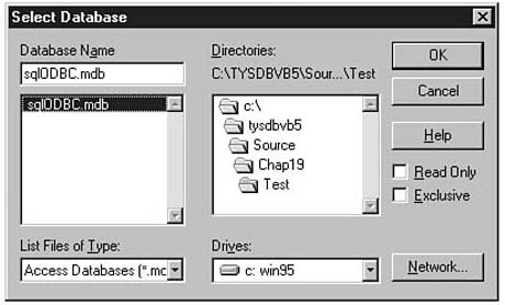 your workstation that has the Microsoft Access data file C:\TYSDBVB\CHAP19\EXER19.MDB