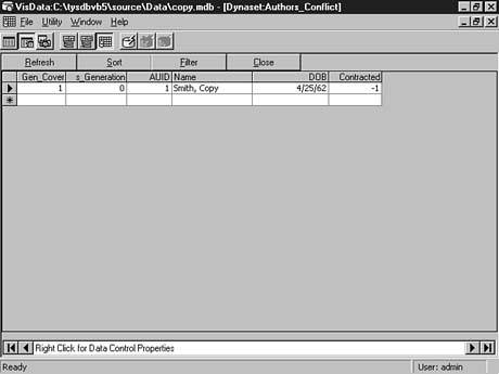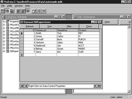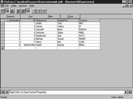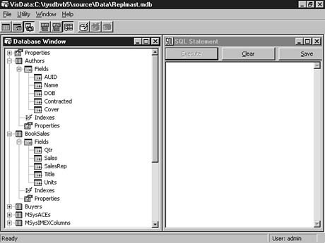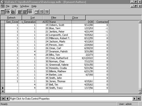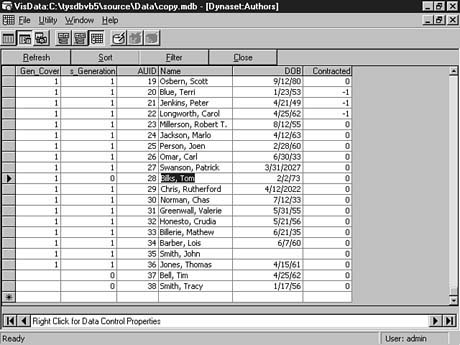 database in Visdata. Expand the Authors table object in the Database Window and then
