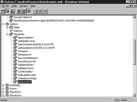 expand the Properties of the Authors table. Notice that the KeepLocal property is set to T.