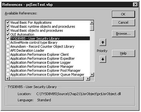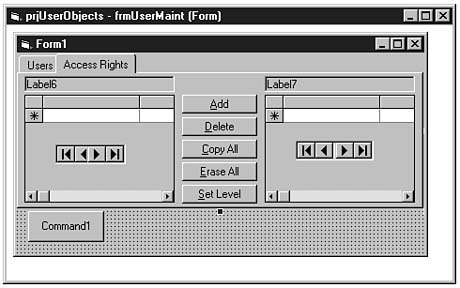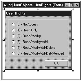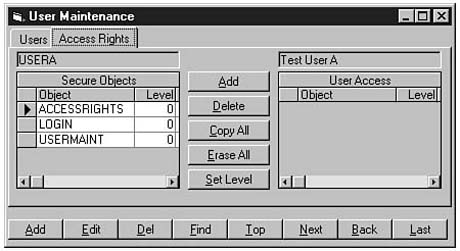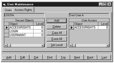 PRJSECTEST.VBP, and run it. If you log in as USERA, you have very limited access