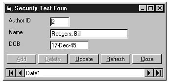 That's all there is to it. Now save the form as FRMSECTEST.FRM and the project as