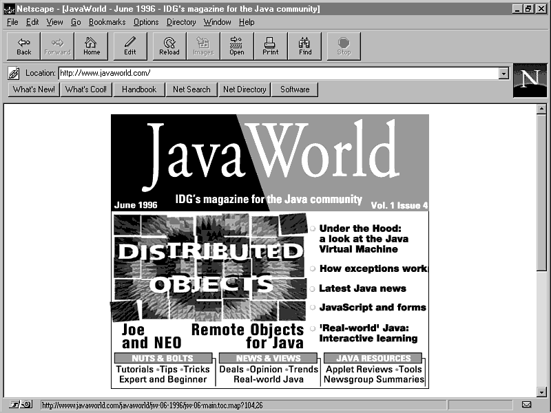 The JavaWorld online journal is an excellent publication by IDG Communications that always has some interesting Java programming articles. You can even subscribe to JavaWorld and receive Java information via e-mail. The JavaWorld Web site is located at http://www.javaworld.com (see Figure B.3).