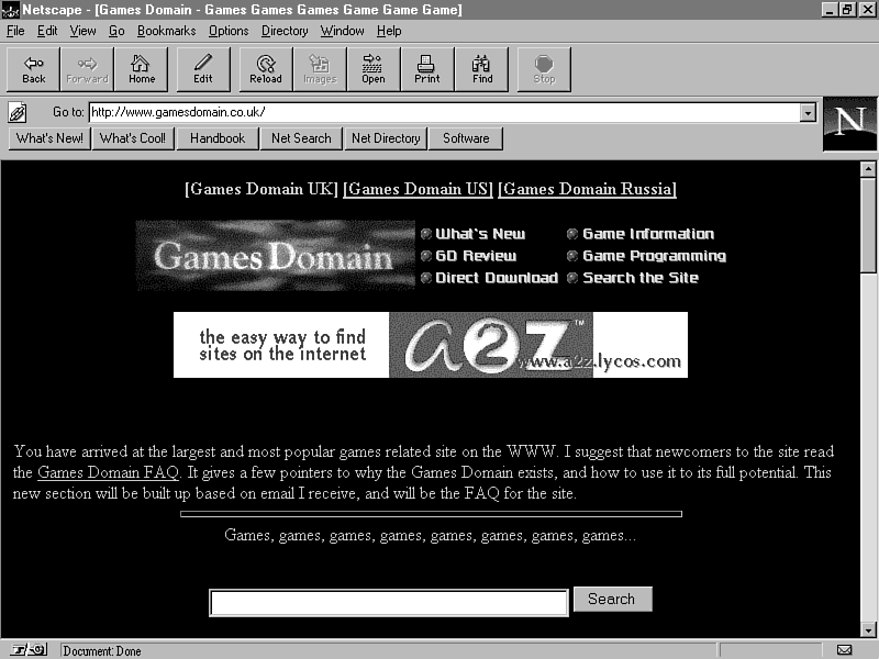 Another cool source of general game information is the Games Domain Web site. The Games Domain contains a variety of game information, including reviews and a complete section devoted to game programming. It is located at http://www.gamesdomain.co.uk (see Figure B.8).