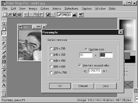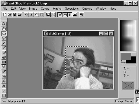 Once you have the pictures, you can use Paint Shop Pro (or a similar graphics program) to get them ready for the Web. You want Web page graphics to be as compact as possible, so you'll usually need to crop or reduce the size of scanned images. Follow these steps to crop an image in Paint Shop Pro: