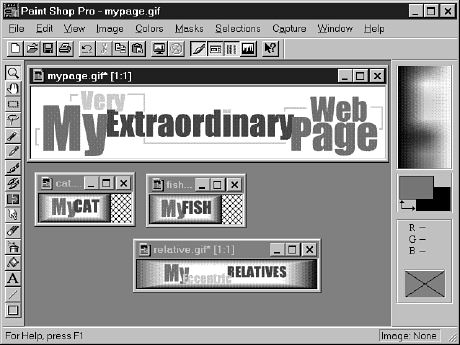 Choosing Graphics SoftwareYou can use almost any computer graphics program to create graphics images for your Web pages, from the simple Paintbrush program that comes free with Microsoft Windows to an expensive professional program such as Adobe Photoshop. If you have a digital camera or scanner attached to your computer, it probably came with some graphics software capable of creating Web page graphics. If you already have some software that you think might be good for creating Web graphics, try using it to do everything described in this chapter. If it can't do some of the tasks covered here, it probably won't be a good tool for Web graphics. To Do: One excellent and inexpensive program that does provide everything you're likely to need is Paint Shop Pro from JASC, Inc. If you are using a Windows computer, I highly recommend that you download a free, fully functional evaluation copy of Paint Shop Pro before reading the rest of this chapter. (Macintosh users should download BME at http://www.softlogik.com instead, because Paint Shop Pro is currently available for Windows only.)