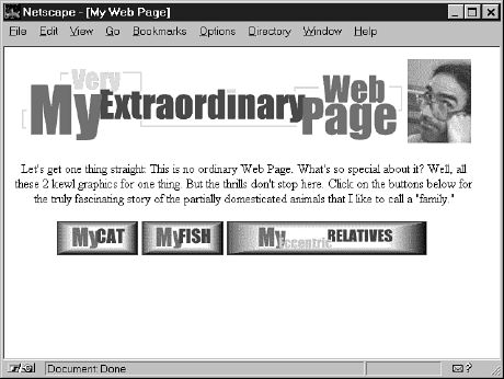 In the rest of this chapter, you'll learn exactly how to create graphics with big visual impact and small file sizes. The techniques you'll use to accomplish this depend on the contents and purpose of each image. There are as many uses for Web page graphics as there are Web pages, but four types of graphics are by far the most common: