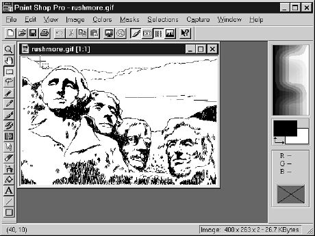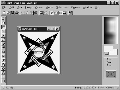 Figure 15.1. Paint Shop Pro can easily tell you the coordinates for image map regions without mucking about with special image- mapping utilities.