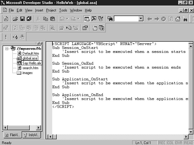 project might consist of the following: where Default.asp is the name of a web page in your project. By default, a global file (global.asa) and a search file (search.asp) are created.
