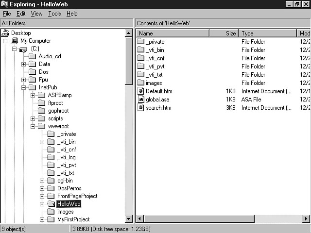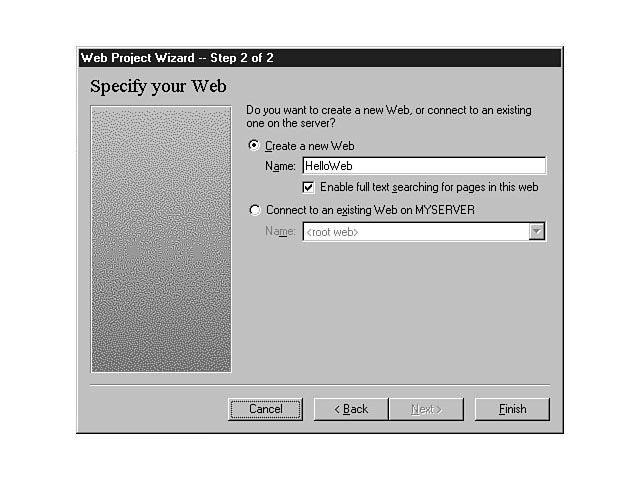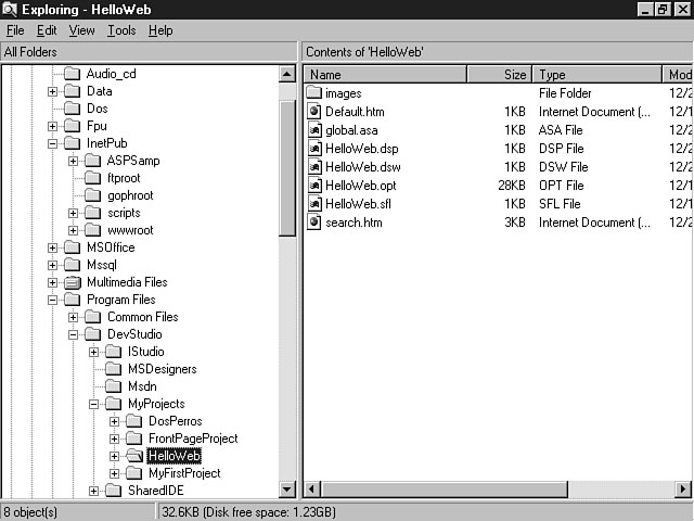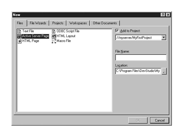would be created within the root directory of your Web server called MyFirstProject. You also can create sub-directory folders from within Visual InterDev to organize