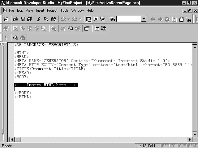 lesson should be a very good introduction to the Visual InterDev development experience. Get a refill on that cup of coffee, and let's begin.