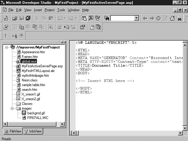 InterDev is very easy to use once you get a feel for the features. This morning, you explored a standard project, learning about the different files