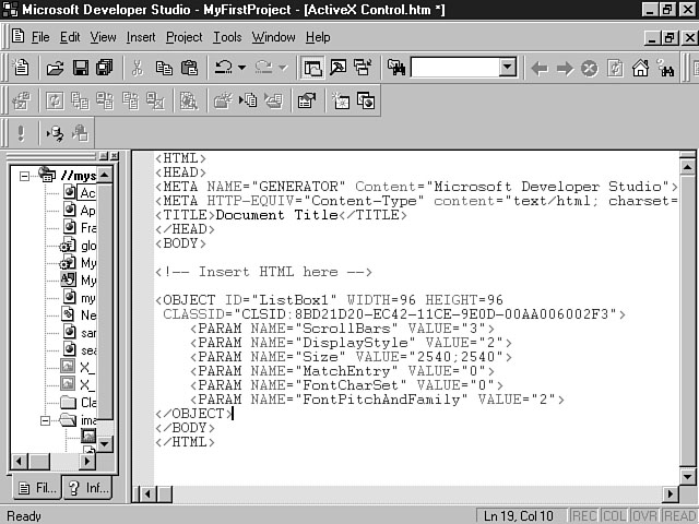 An HTML Layout is inserted into your HTML file. The layout is denoted by the <OBJECT>