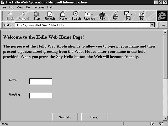 refresher on browser extensions and how they fit into the Visual InterDev scheme. At the end of toChapter's lesson, you will build your first Hello Web application.