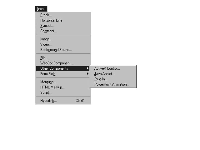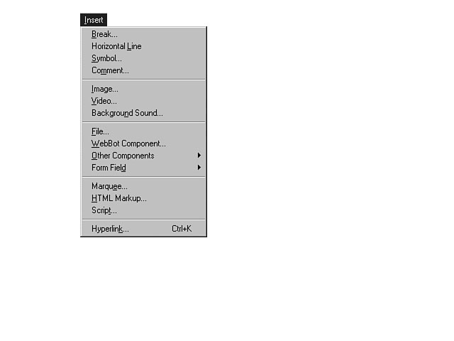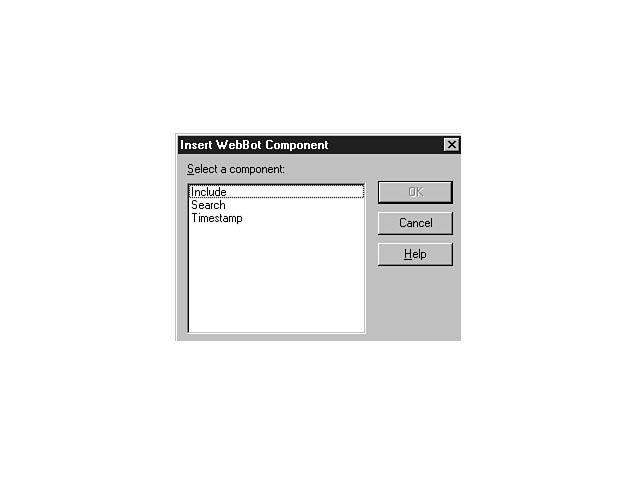 FrontPage Editor comes with several WebBots that are covered later in the Chapter. WebBots