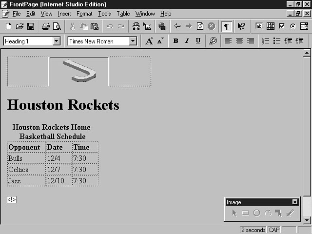 As you can see in this figure, the FrontPage Editor displays the images as well as