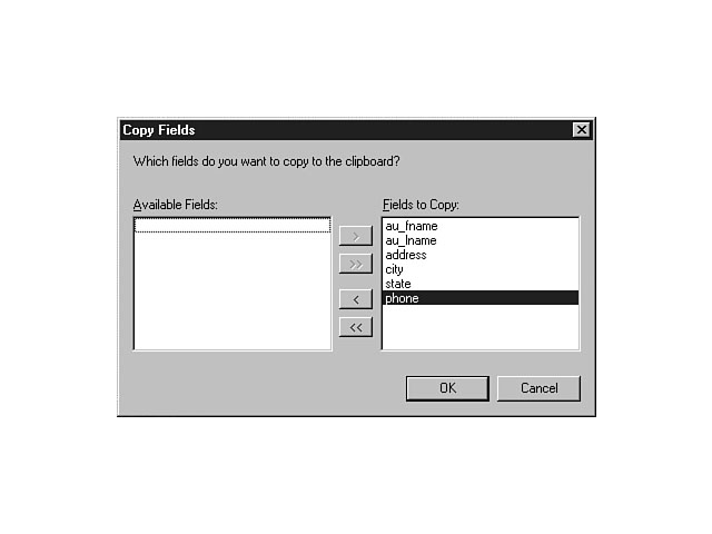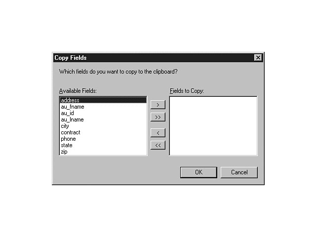 3 You can use the Copy Fields dialog window to select database fields to insert