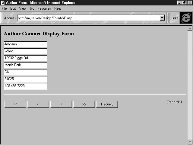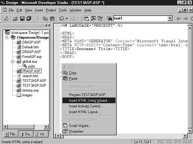 Notice that the fields that are copied into the ASP file use the <INPUT>