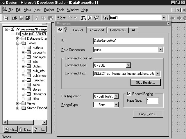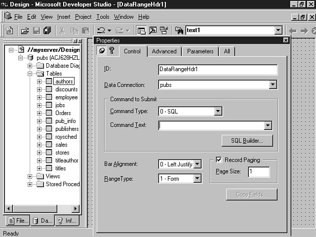 Builder Wizard. You can use this wizard to easily insert pairs of design-time controls