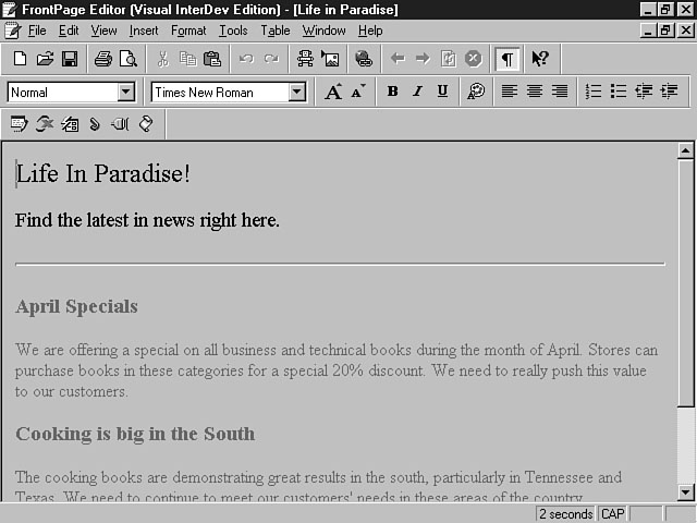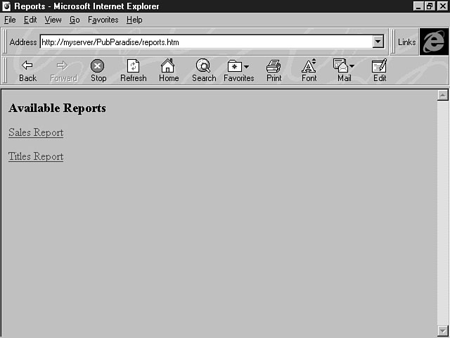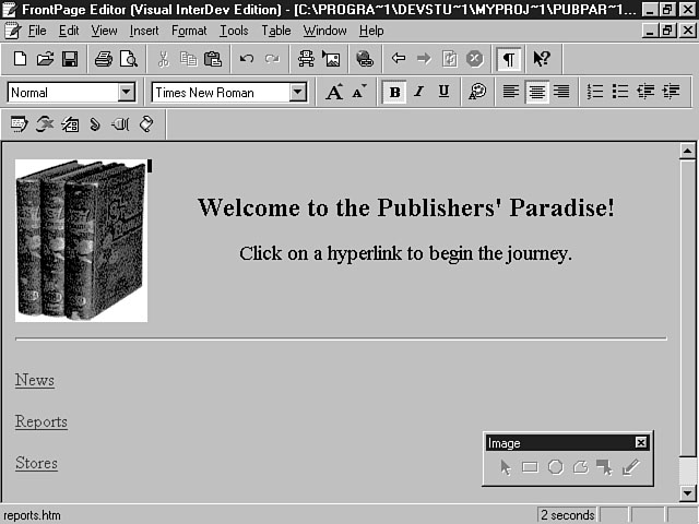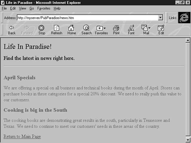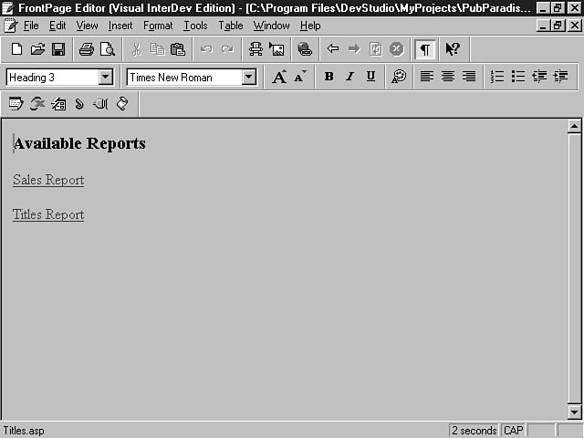 the PubParadise project with the FrontPage Editor for Visual InterDev. This file