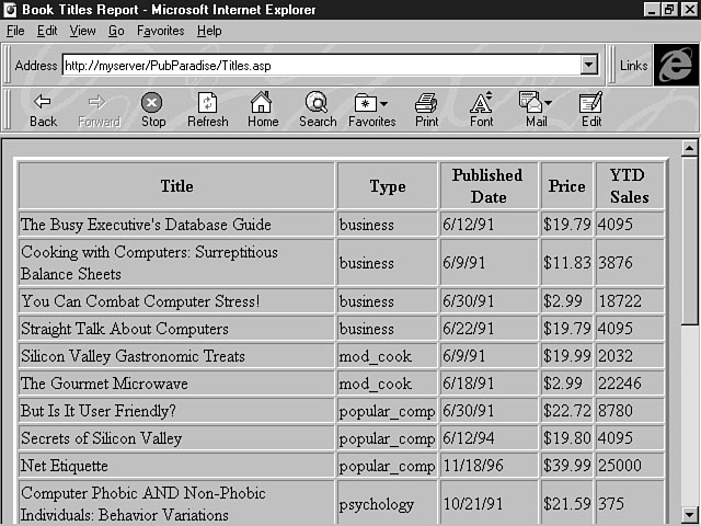 integration. Given the powerful capabilities of Active Server Pages, you should use