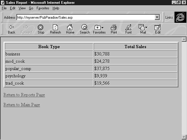 <PARAM NAME="CommandText" VALUE="SELECT type, SUM(ytd_sales)