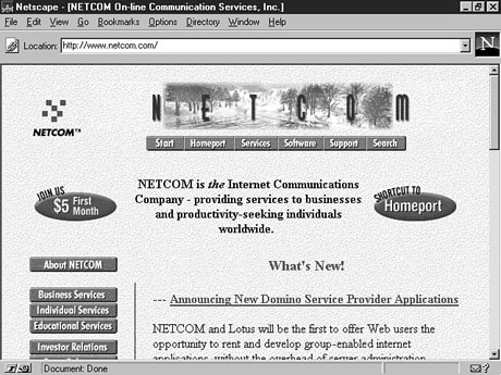 1. What is the price structure? 10. How many newsgroups can I access? Newsgroups enable users with similar interests to share their thoughts with each other. Star Trek fans, for example, can congregate in a specific newsgroup to discuss the characters, plots, and upcoming movies. Some ISPs offer limited newsgroup access; others have none at all. Commercial Providers: AOL, CompuServe, MSN, and ProdigyIf you have recently bought a computer magazine, chances are it came with ads (and probably software) for one or more of the major national online services: America Online (AOL), CompuServe, Microsoft Network (MSN), or Prodigy. Of these major online services, AOL is consistently rated best by magazines that compare the services. Figure 4.1 shows the AOL interface. CompuServe usually comes in second, with MSN, because it is still new and developing, in third place. For quick information, check AOL's Internet site. What Do These Services Offer?One of the best selling points of these services is their sign-up process. Connecting to them is usually simple: You install the free software they provide, follow the onscreen instructions, and you're connected. In addition to the vast resources of the Internet, these services also give you access to certain content that is not available to people who don't use the services. These ISPs, for example, have their own chat rooms, newsgroups, online shopping, special-interest groups, and searchable references that only subscribers to the service can use. What Do All These Services Cost?Two drawbacks really stand out about using these services: cost and cost. The first cost to consider is the amount AOL, MSN, Prodigy, or CompuServe charges your credit card each month. America Online (www.aol.com) now offers three pricing plans to better suit its users. The standard monthly package gives you unlimited Internet access for $19.95, with discounts down to $14.95 a month if you pay for two years in advance. Other offers include unlimited access to AOL's network through a local ISP for $9.95 a month, or the light-usage program at $4.95 for three hours of access. MSN, (www.msn.com), not surprisingly, is running very similar deals: One month of unlimited access to the Internet and MSN for $19.95. MSN underbid AOL by offering access to MSN content for $6.95 a month when you use your own local ISP. The company also has hourly service at $6.95 for five hours of connection time. Prodigy (www.prodigy.com) also offers an unlimited plan for $19.95. The company's secondary plan gets you 10 hours of online access for $10. To try out Prodigy's service you can sign up for one free month of unlimited access. The price structure is changing regularly in response to an extremely competitive market. These charges were available at the time of this writing, but the deals will no doubt change and others will take their place as the competition gets stiffer. The second factor that affects the cost of using one of these commercial online services is the dial-up access numbers. These national ISPs don't have local access numbers in all areas. If you live in an area not covered by a local access number, you may be forced to place a long-distance or local toll call whenever you log on. National ISPsOne way many people use a national online service like AOL is to get their feet wet and to learn more about the Internet. When they feel comfortable, they move on to a local provider that gives more options and often better service. National online services occasionally don't allow users with 28.8 kbps modems to run at 28.8 kbps. The modem banks they use may max out at 14.4 kbps, leaving those people with newer computers watching graphics download slowly as their wallets are being emptied. Be sure to check that the company offers at least 28.8 kbps connections in your area. If you like the idea of working with a national company but don't want to pay per-hour prices, a number of national companies now offer direct access to the Internet at a flat rate. Netcom, as shown in Figure 4.2, offers a $19.95 package that gives you unlimited Internet access and 24-hour support. Netcom advertises its services and specials on its Web site. AT&T has started offering Internet access, and Bell Atlantic reportedly plans to do so soon. Even AOL and CompuServe are getting in on the act. AOL also owns GNN, which is a national ISP, and CompuServe is debuting its Wow! service, featuring "unlimited" Internet access for $18 per month. Under such a price structure, you could theoretically log on to the Internet and never log off. Maybe you won't do that, but other people will--and when they do, that's one less modem available per person for all the other customers. Someone is losing out, and it's not the person who stays connected around the clock. The Local Connection: How to Find a Local ISPFinding a local ISP is getting easier all the time. Because ISPs are popping up all over the place, it's hard to talk to someone that hasn't done some of the work for you. Phone guides, friends, coworkers, and local computer stores are all good sources of information for finding your local ISP. I know this procedure will sound very low-tech, but the classics live: Tear your fingers from the keyboard and pick up the phone guide. Check the yellow pages for Internet service providers, and you should find a good starting point. Because new ISPs are always beginning to offer services, some may not be included in the phone guide. The next source for finding a local ISP is as close as your local computer store. Odds are that the staff of the store can recommend a few good services. The computer store may also have special deals with some local providers and may be able to get you a trial subscription or a discounted rate. It never hurts to ask. If you happen to be lucky enough to be investigating ISPs at the same time that a local computer club is having a computer show, you should know that providers flock to shows to have rate wars with