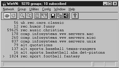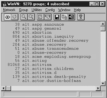 Most of the figures you see in this chapter feature a newsgroup client called WinVN. As you learn in Appendix B, "Shareware Products for Windows," several other good clients are available for both Windows and Macintosh. (Appendix C, "Shareware Products for the Macintosh," lists some products for Macintosh, as well.) Most of these clients operate basically the same way; slight differences in clients are generally easy to figure out.