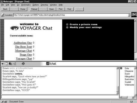 After you join a channel, you don't have to begin all your lines with a slash (/). Anything you type is simply distributed to all the users as a message from you. Only include the slash when you want to use a command or when you don't want the message to be seen by the entire group. CAUTION: The /Names and /List commands can produce massive amounts of text, especially on large IRC networks. Be prepared! As with any graphical interface, some Windows and Mac clients can relieve you of having to memorize a list of commands by enabling you to use buttons and pull-down menus. Finding, Plugging In, and Surfing IRC ChannelsIRC servers make up the hardware for the IRC network. You have to connect to one of these servers to access the network, so finding one is very important. You also may want to use an IRC client. You can download clients from various FTP sites. Some of the coolest that I have found are listed in the following sections. You also should obey some general rules, as outlined later in this lesson, when using IRC. IRC ServersThe following is a short list of some of the IRC servers available for use. If you downloaded an IRC client, you can probably find a much larger list of sites. Due to the constant change of the Internet, not all of these servers may be available by the time you read this lesson. blacksburg.va.us.undernet.org:6667 These servers are all within the Undernet network. Numerous other servers are connected to other networks. Find the one closest to you that you enjoy for the best effects. FTP for the ClientYou may want to download an IRC client to make connecting and communicating easier. The easiest way to find a client that you like is to check a search engine. Lycos (www.lycos.com) and Infoseek (www.infoseek.com) both have long lists of sites offering IRC clients, as well as complete information on installation. You also may want to check with your Internet service provider about what software they recommend. You may be able to download a copy of a client from their site. They may also be able to offer you some support if you run into problems. The following are some popular places to start looking for a client: ftp://ftp.undernet.org/pub/irc/clients/windows/ ftp://cs-ftp.bu.edu/irc/clients/pc/windows/ ftp://papa.indstate.edu/winsock-l/winirc/ ftp://ftp.winsite.com/pub/pc/win3/winsock/ http://alf8.speech.cs.cmu.edu/~ircle/ http://www.ex.ac.uk/~jastaple/irc/irchelp.asp EtiquetteJust as you do with e-mail and newsgroups, you should follow some etiquette guidelines with IRC. DO admit that you are new and ask for help if you need it. No one likes to admit it, but everyone was a newbie once. DO be tolerant of other users. DO be friendly and talk to other people. Friendships will develop quickly and can be useful if you're playing in Internet combat games. DO answer messages and public comments. DO use "shorthand" whenever possible. The following abbreviations also relate to shorthand that you may see in e-mail: brb be right back bbl be back later oic Oh, I see! imho In my humble opinion rotfl rolling on the floor laughing DON'T flood the channel with massive numbers of messages in a row. These messages may overflow some users' modems. Along those lines, don't send pages of information; keep your messages short and to the point. DON'T use autogreets, or automatic messaging, to say "Hello" and "Goodbye" automatically as people enter or leave the channel. They get old, and you may not really mean what you say. DON'T be offensive. People also use emoticons in IRC. The smiley :), for example, and all other sorts of characters are widely used to show emotion in an emotionless environment such as IRC. See Lesson 5, "Understanding E-Mail," for more emoticons. Chatting on the WebAs I've said before, hordes of IRC clients are available for use on most platforms. In the following sections, I describe three that I have found the most useful and that will go to the next level in chat. The first, mIRC, is a great chat program that is the most-used IRC application in the Windows environment. The next is ichat, a browser plug-in that offers you the privilege of not having to learn how to use a chat program because it is integrated within the Web browser. The last is of the next generation of IRC clients; Worlds Chat uses 3-D graphics and virtual reality to go above text-based chat. mIRCmIRC, which is a shareware IRC client for Windows, was developed by Khaled Mardam-bay. mIRC includes all the functionality of the normal text-based IRC clients from the UNIX, Windows, and Mac platforms. With a user-friendly interface, it is the most-used Windows IRC client. mIRC is highly configurable, enabling you to save settings for each connection. A toolbar with all the frequently used commands is displayed at the top of the screen. Tooltips are even included, in case you forget what the icons stand for. User customization is one of the strong points of the mIRC client. mIRC offers colored text lines, aliases, and remote commands. World Wide Web and sound support round off this client. Figure 11.1 shows a sample session using mIRC. Using mIRC to chat with other users. ichatichat is the first IRC plug-in for Netscape Navigator and Microsoft's Internet Explorer. Developed by ichat, inc. (www.ichat.com), the ichat plug-in integrates seamlessly with your browser to make access to IRC, MUD, and the ichat rooms as easy as viewing a Web page.