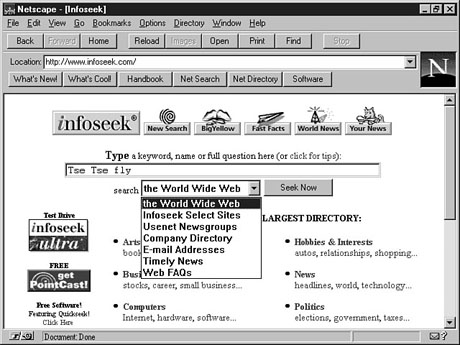 a choice of where to search. Using Infoseek, located at http://www.infoseek.com,