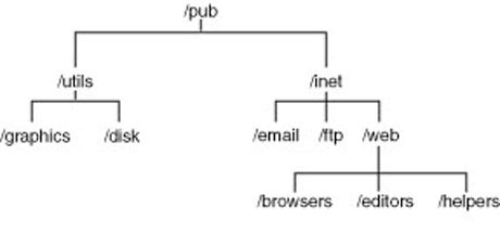 FTP Structure and SyntaxBefore you can download anything from an FTP site, you must first get onto a site and then know how it is structured. When doing so, you need to know three basic pieces of information: the site name, the directory path of the file you want, and the actual name of the file. Time Saver: Often, you may not know the specific location of the file you're looking for. Usually, you can conduct a search on the Internet. You can find an excellent place to search for software on the Internet at http://www.shareware.com/. For more specifics on searching for files on FTP, refer to Lesson 20, " Finding People, Places, and Things on the Net." You already learned about domain names in many previous lessons. FTP site names generally (but not always) begin with ftp. As you also know, the protocol portion of an FTP URL is ftp://. Whether you're using a Web browser or an actual FTP client, you shouldn't have any problem getting on. Just remember, if your client asks for a user ID or login ID and password to get onto a site, just use anonymous as your user ID and your@email.address as your password, as shown in Figure 17.2. With most FTP clients, like WS_FTP, you can enter all relevant information before getting on a site. Like a TreeThe second element you need to know is the directory path of the file you want. Directory paths are much like the branches of a tree with each subdirectory "branching" off from a previous one. If you were to climb a tree, for example, you would start at the trunk, climb on a branch, then move out on a limb, and so on. FTP sites are the same. The "trunk" of the FTP site is called, not coincidentally, the root directory. From this directory, you choose the branch directories (called subdirectories) from the root directory. Figure 17.3 shows a simple directory tree on a hypothetical FTP site. An FTP site's directory path even looks sort of like a tree. First, notice that directories on FTP sites all begin with a slash (/). Each slash represents one level, or branch, on the FTP site. If the file you want is in /pub/inet/web/browsers, for example, you take the /inet branch from the /pub trunk, go to the /web limb, and then jump to the /browsers twig (okay, maybe I'm stretching the analogy a bit). Presumably, the file you want is in that last subdirectory. Navigating these paths is easy once you're used to it. If you're using a Web browser, selecting directories and using the Forward and Back buttons enables you to navigate nicely. If you're using an FTP client, such as WS_FTP, you can still click directory names to move down. To move back up, however, you need to remember to double-click the double-dot (..) at the top of each directory window. The double-dot is another throwback to times before GUI interfaces and is standard syntax for "go up a directory." Names: The File FrontierProbably the most confusing part of FTP is the really strange names that files seem to have. If you don't know what you're doing, they can seem almost indecipherable. You can keep in mind a couple points when dealing with filenames, though. First, know that most files you find on FTP sites are compressed to save space. A compressed file has its original code "compacted" into a smaller file. This means that you have to "decompress" files that you download before you can use them. Second, quite a few compression utilities are available, which also means that you need to know many different filename extensions. Table 17.1 gives a breakdown of the most common file extensions on FTP sites today. Table 17.1. File extensions explained.