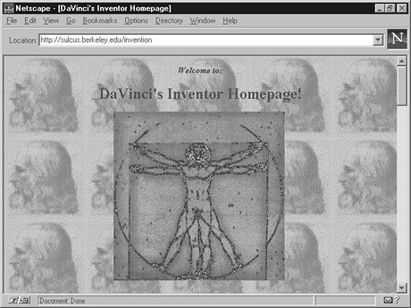 As with the other lessons in this section, there is far too much information on this topic to cover completely in a few short pages. However, this lesson should give you an excellent foundation for finding those business resources that exist on the Internet that are of interest to you. The Entrepreneurial InternetThe fastest-growing sector of the business market is in small and home-based businesses. Some financial experts even estimate that it won't be long before businesses employing fewer than 50 people make up the majority of employers in the United States. Regardless of whether these predictions are true, entrepreneurs will continue to need and use information to help them realize their part of the American Dream. This portion of the lesson is going to take you through some of the resources available from the perspective of my Aunt Rea Prenure. Aunt Rea has been trying to start her own small business for a long time. Let's see what's out there for her. Getting StartedRea has been keenly interested in craft items all of her life, and so, even though she isn't sure exactly what she's going to do with crafts, she wants to see what she can do. One of her many talents is in inventing and designing new craft patterns and tools to help others enjoy their own crafts. Whatever she does, she knows she wants to make these available to others, so she first needs to find out all she can about s, inventions, and other legal issues. The first place she goes is to DaVinci's Inventor Homepage at http://sulcus.berkeley.edu/invention (see Figure 23.1). Scrolling down the page reveals many interesting links. To Do: Explore DaVinci's Inventor Homepage1. Click the Inventor & Entrepreneur Associations & Organizations link to find out about many organizations that help inventors get started and keep going.2. Click the Master List of Legal Resources in DaVinci's Workshop for information on patent law and related issues. 3. Click the Master List of Usenet Links in DaVinci's Workshop to find out about newsgroups for inventors such as alt.inventors, misc.int-property, and misc.entrepreneurs.moderated. DaVinci's Inventor Homepage is a great place for the creative entrepreneur to start. Next, she wants to find out about franchising opportunities, so she checks out the Franchise Opportunity Superstore at http://branch.com/franchise/franord.asp, where she can fill out an interactive form to receive franchise information.