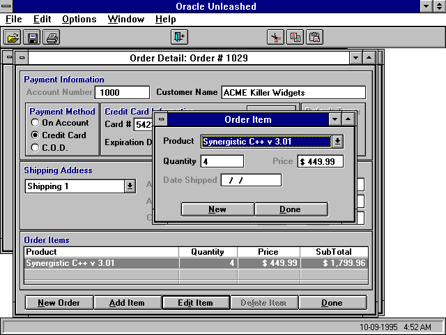 Figure 21.5. This window uses application security to make the price and date shipped for a particular role read-only.