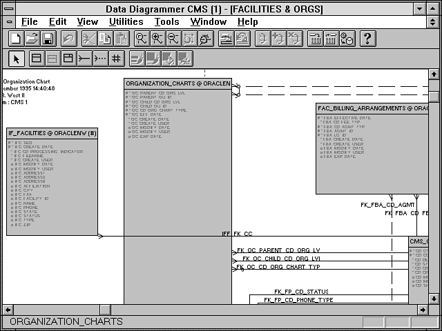Often, you could have multiple diagrams for one application in Designer 2000. For example, a business might have an accounting department and a payroll department. Both departments could have separate diagrams, and a third diagram might depict all the