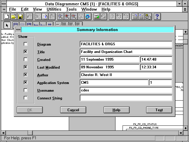You can enter any summary information you want to display on the top of the diagram. To edit the summary information, choose File | Summary Information (see Figure 27.5).