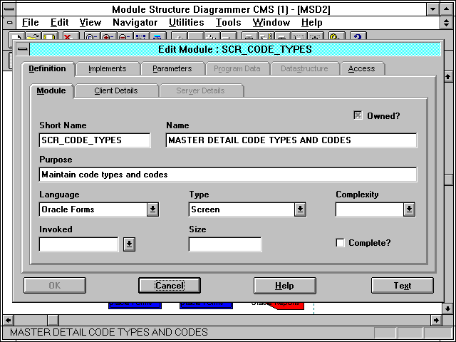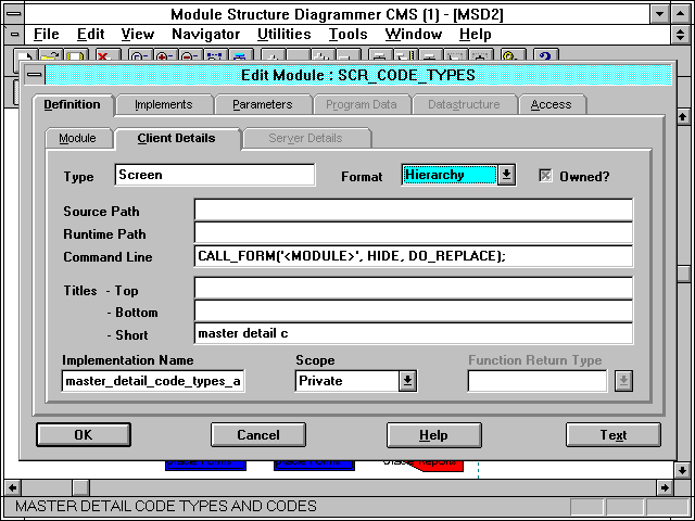 Certain tabs are only available to client modulesor screens, reports, and menus (see Figure 27.13). The Client Details tab contains information specific to generating a client tool.