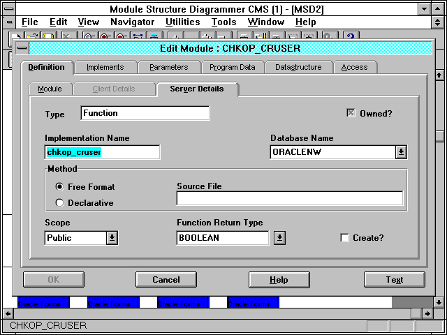 You can also add a new module to the diagram. Decide what kind of item you want to put on the diagram and select its icon: Menu, Form, Report, PL/SQL, or Utility (refer to Figure 27.10). Once you place the cursor on the diagram, you are prompted for a