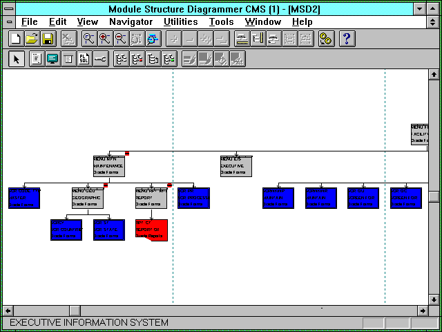 Start the Module Structure Diagrammer by clicking its icon and entering your user ID, password, and application. Across the top of the screen, you see a set of icons used for designing a diagram (see Figure 27.10).