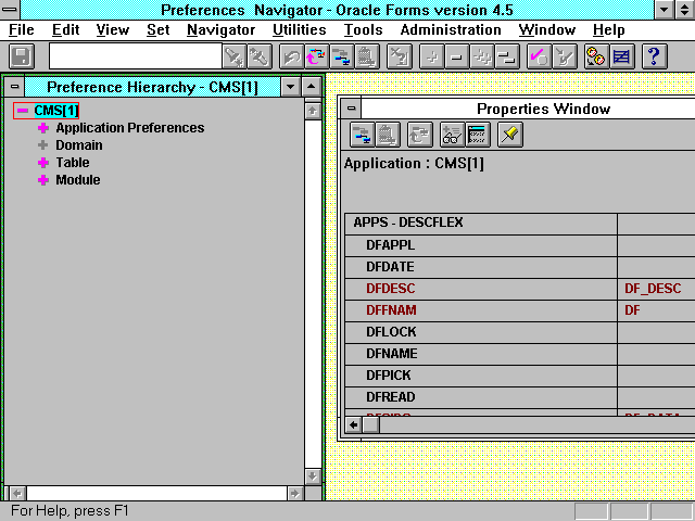 When you select a preference from the list, the meaning of the preference appears on the bottom of the screen. For example, BUTMAX is the maximum number of buttons within a radio group. The properties window displays the current value for the