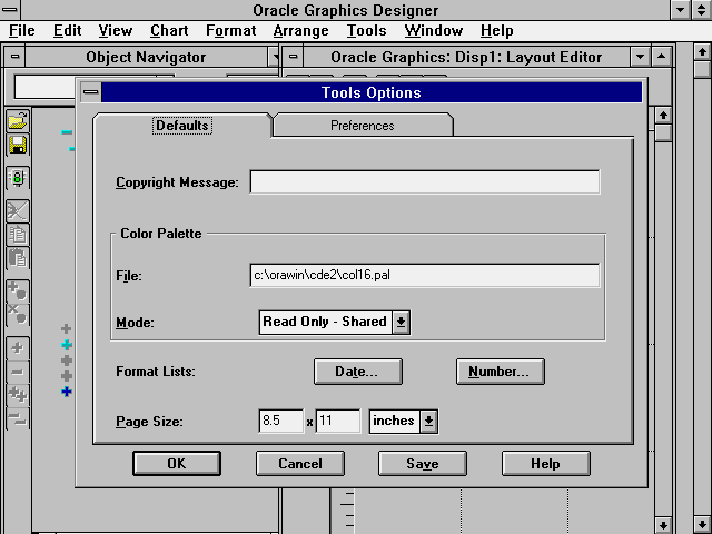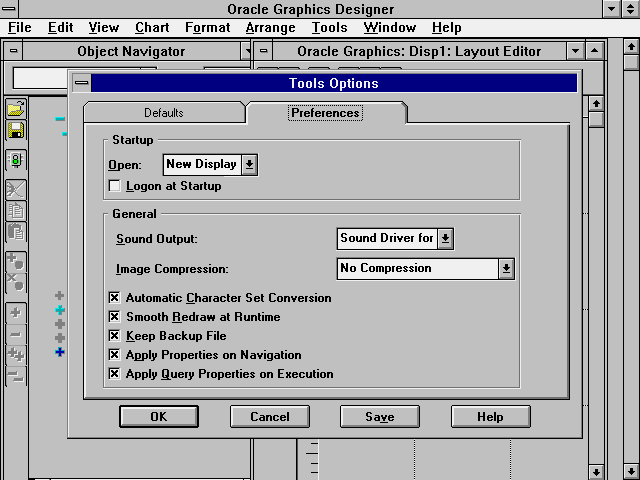 Figure 34.2. The Oracle Graphics default options dialog box.