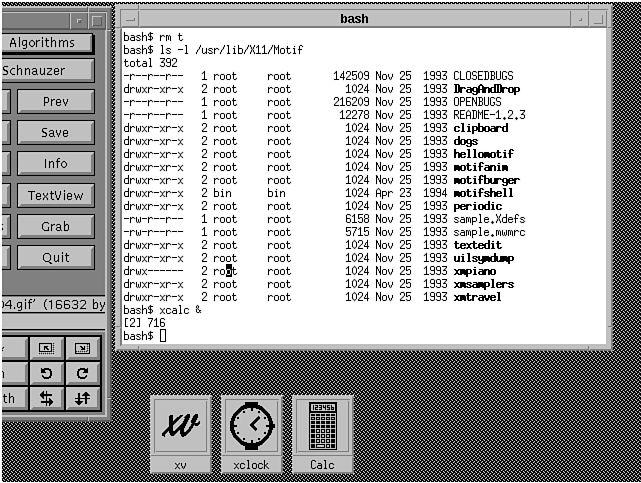 To restore an icon to a screen, move the cursor to the icon and click on Button1 twice in quick succession. This is known as double-clicking the mouse. Some Motif icons are shown in the bottom left side of Figure 23.3.